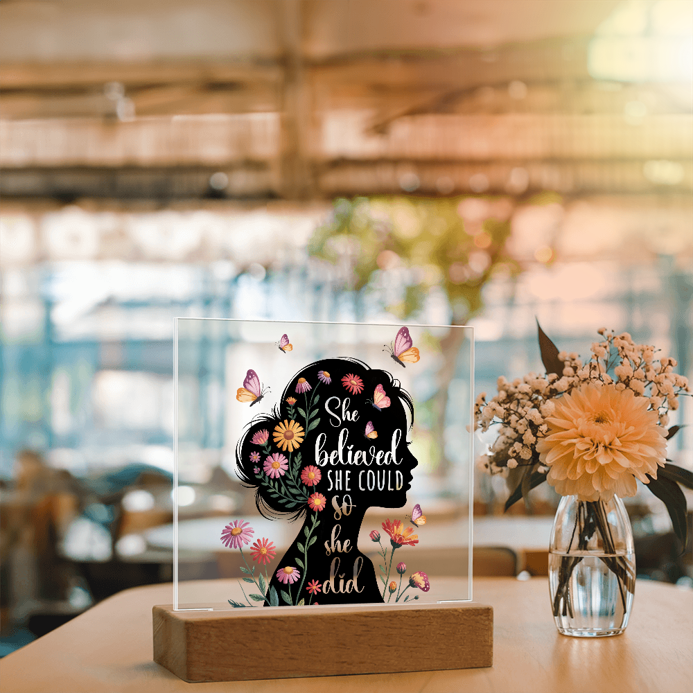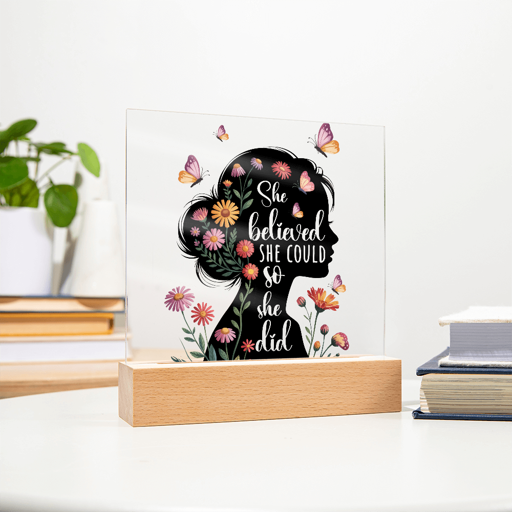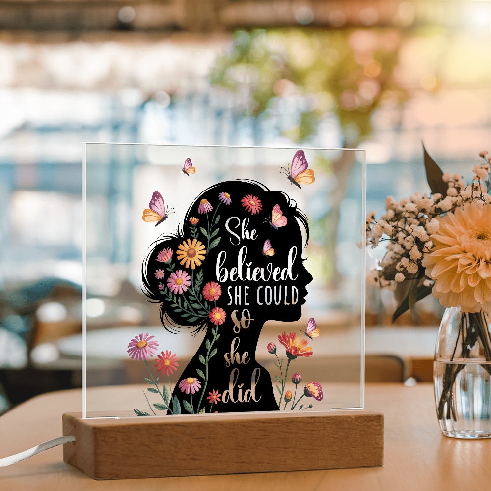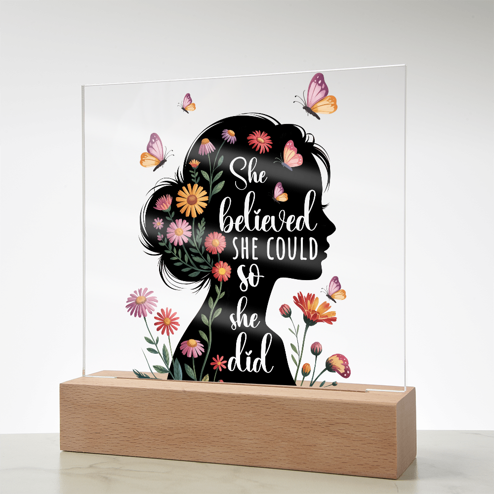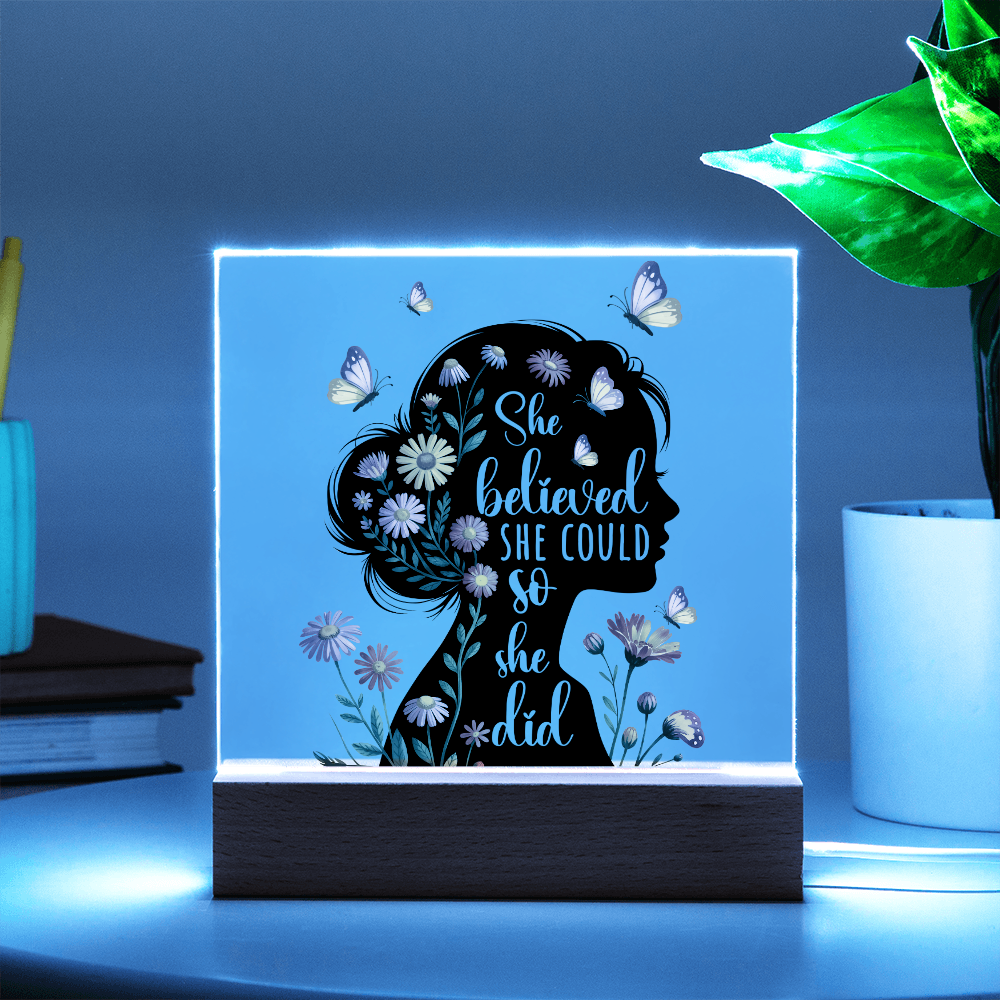 She Believed She Could...Printed Square Acrylic Plaque with LED base