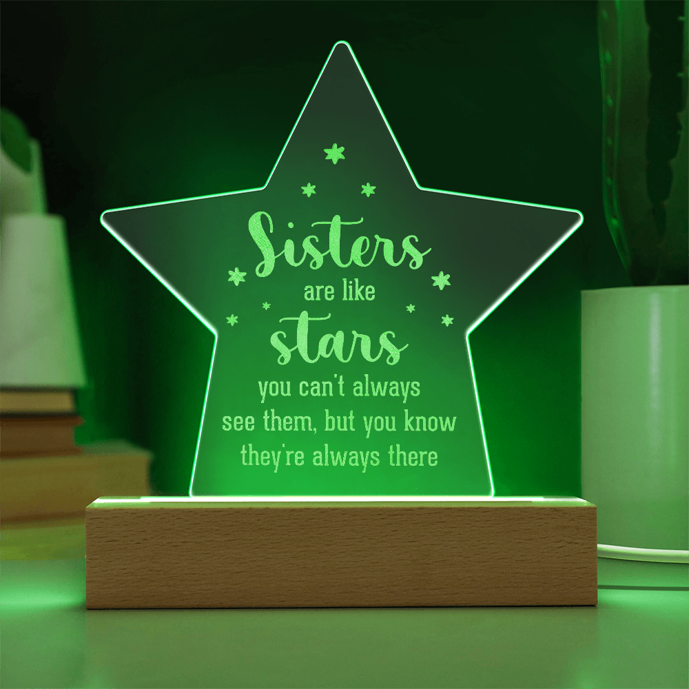Sisters are like stars...Engraved Acrylic Star Plaque with LED base