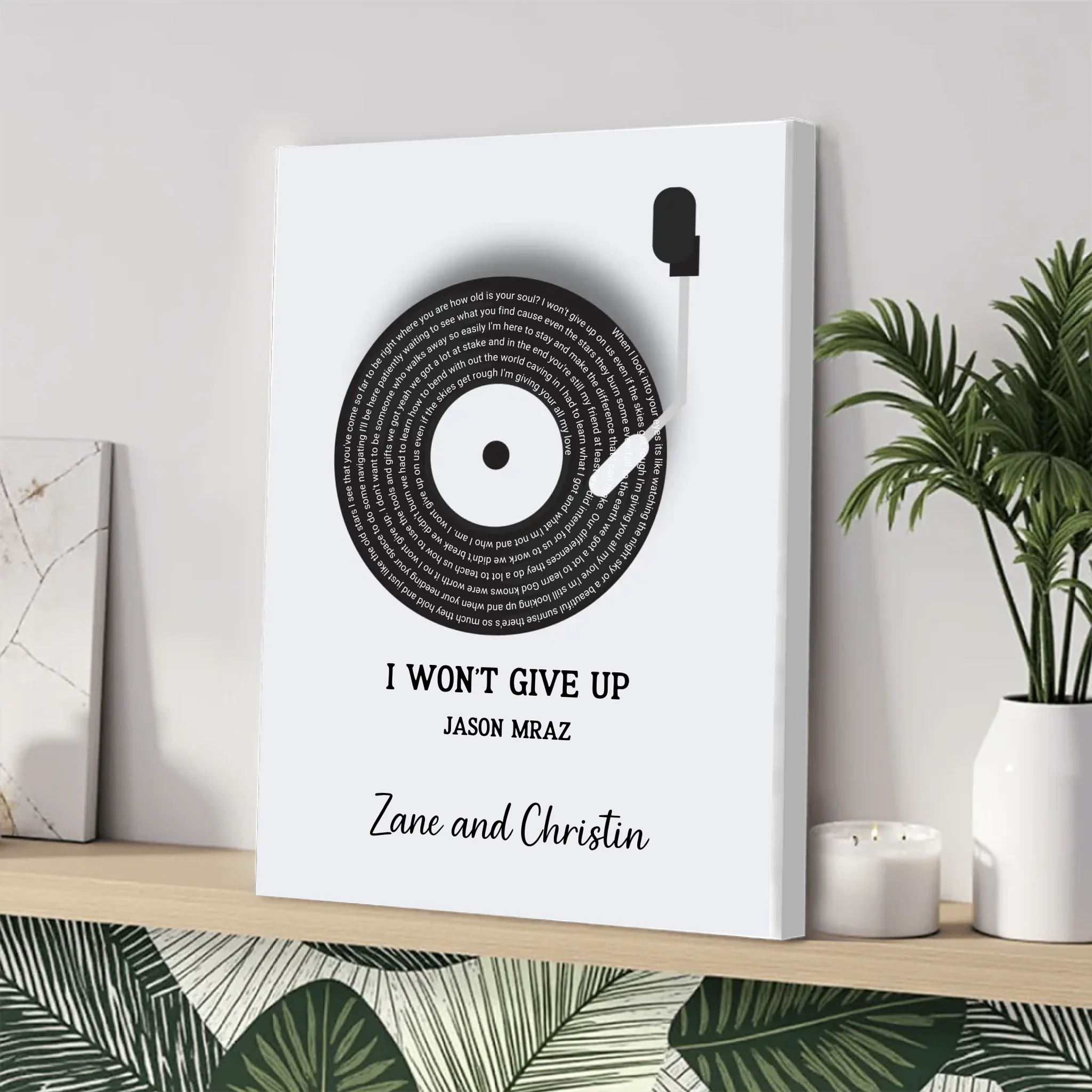 Whether it’s your first dance song, wedding song, or a track that holds special meaning, this canvas turns music into a memory you can see and feel every day.